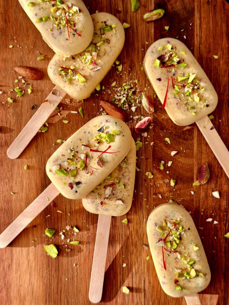 Pojďte zkusit tento recept na Kulfi! 💚 Indický mražený dezert s kardamomem, šafránem, pistáciemi a mandlemi.